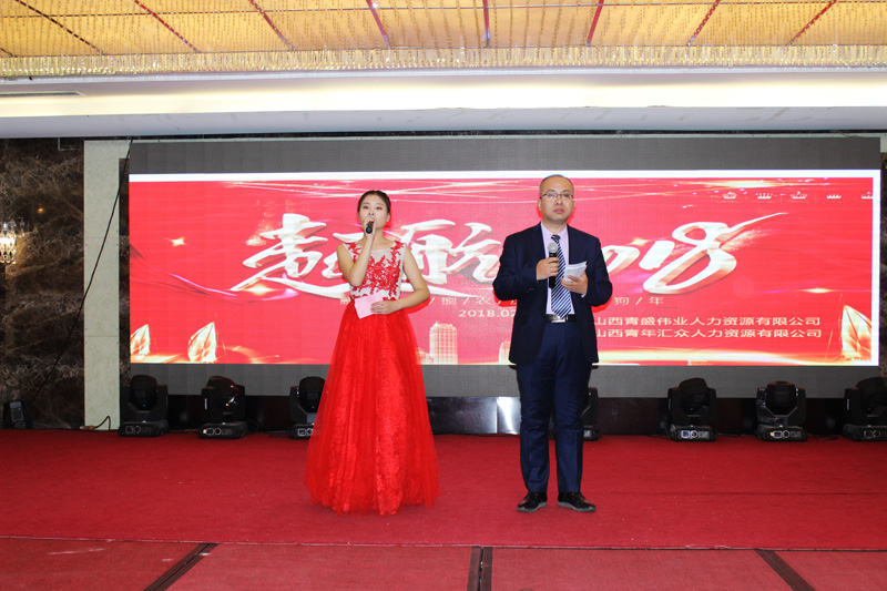 2018年2月4日16時,山西青盛偉業(yè)人力資源有限公司2018年年會暨第六期快樂會議在潞安戴斯酒店盛大開啟。此次盛典以“走進(jìn)新時代·培育新動能”為主題,回顧和盤點了2017,開啟美好嶄新的2018。公司全體員工,陽泉遠(yuǎn)中、忻州興達(dá)、晉中尤復(fù)金、清徐匯盛、和順華鷹、山西諾云等區(qū)域合作伙伴及員工家屬歡聚一堂,共度聯(lián)歡。