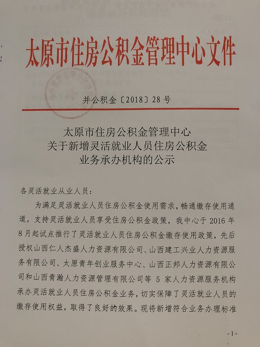 關(guān)于新增靈活就業(yè)人員住房公積金業(yè)務(wù)承辦機(jī)構(gòu)的公示