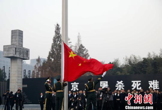 上午10點(diǎn),2018年南京大屠殺死難者國家公祭儀式,在侵華日軍南京大屠殺遇難同胞紀(jì)念館集會廣場舉行,現(xiàn)場國旗下半旗,伴隨著軍樂團(tuán)演奏的《義勇軍進(jìn)行曲》,全場高唱中華人民共和國國歌,并向南京大屠殺死難者默哀、敬獻(xiàn)花圈。同時,南京全城拉響防空警報,汽車停駛鳴笛,行人就地默哀。
