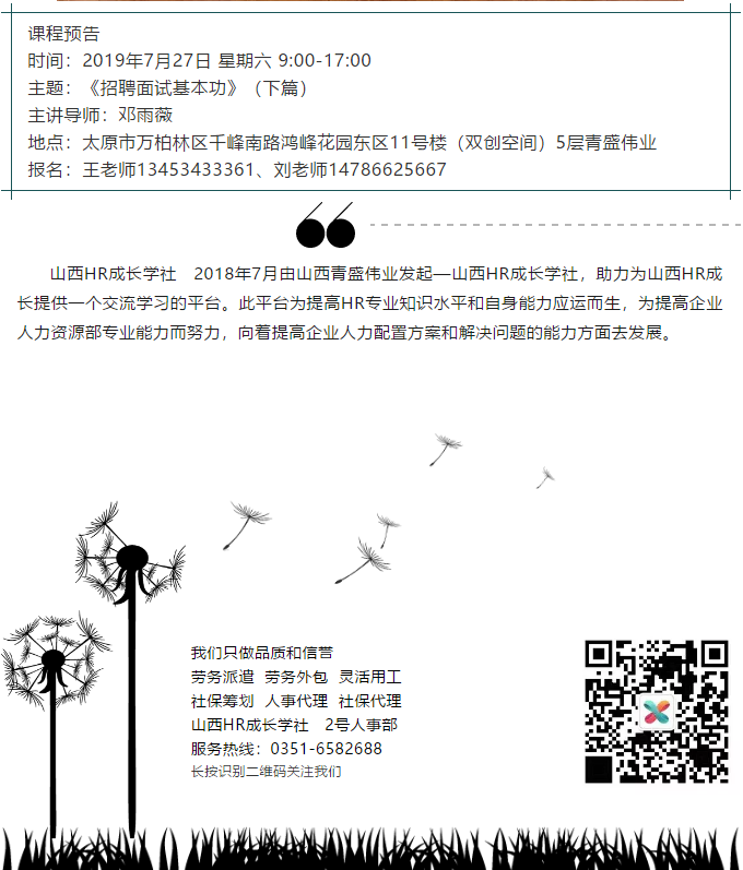 版權(quán)所有:山西青盛偉業(yè)人力資源有限公司 聯(lián)系電話:0351-6582688 地址:山西省太原市萬(wàn)柏林區(qū)千峰南路鴻峰花園東區(qū)11號(hào)樓(雙創(chuàng)空間)五層C區(qū)