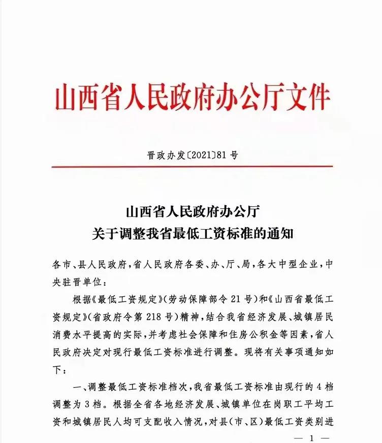 山西省關(guān)于2021年調(diào)整我省******工資標(biāo)準(zhǔn)的通知,一類地區(qū)1880元,從10月1日起執(zhí)行